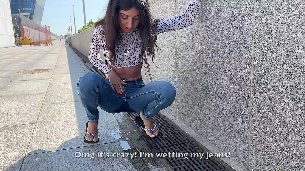 PUBLIC PEE WETTING JEANS ON STREET
