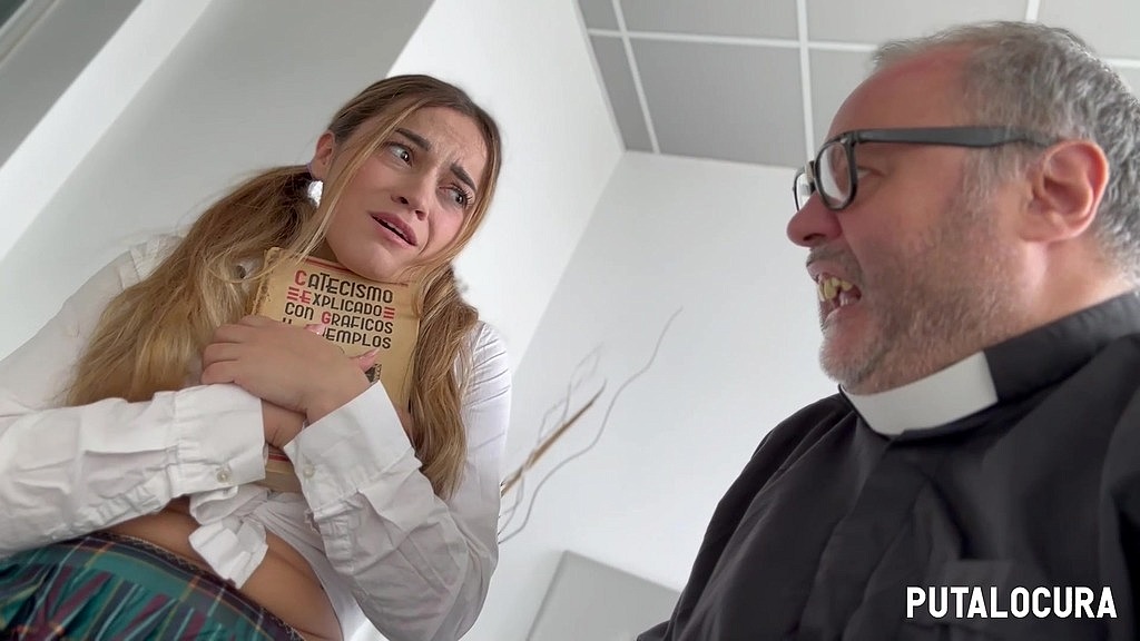 PUTALOCURA - LA ESTUDIANTE MARTA VILLALOBOS SE CONFIESA CON EL PADRE DAMIAN.
