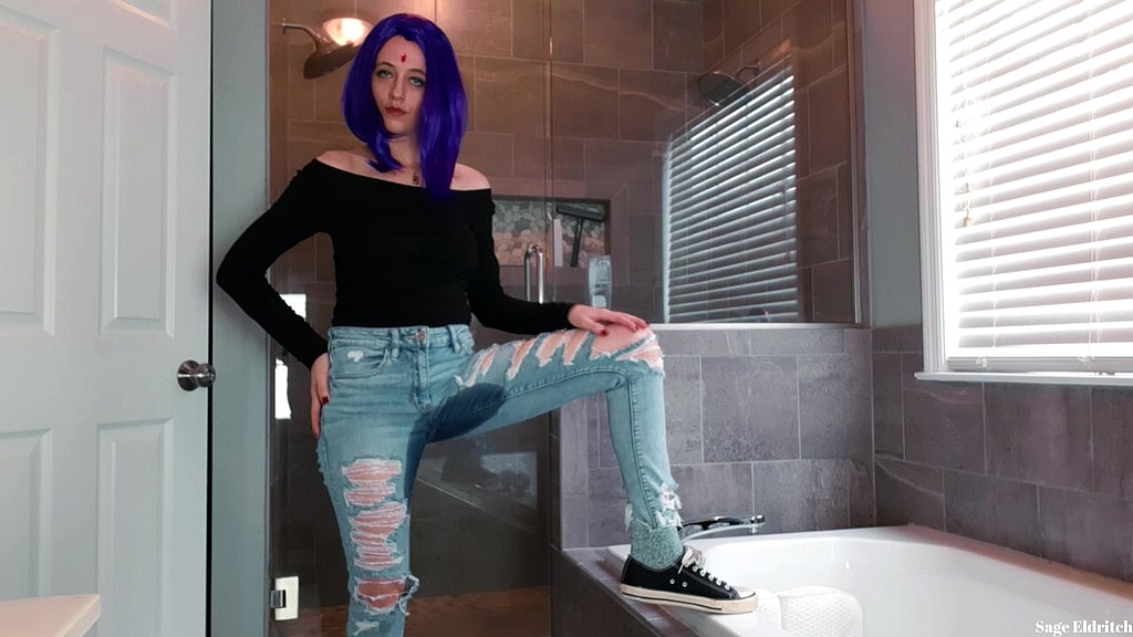 Raven is wearing casual jeans today with a black top and sneakers. Standing in the bathroom, she is going to pee her pants for the first time while you watch. She stares at you as she pees her pants. She tinkles a few different times from different angles until her blue jeans and panties are soaked. After she s relieved herself, Raven pulls her pants down to reveal the soaked silky panties under her jeans. She shows off the wet panties until pulling her jeans back up and re-buttoning them.