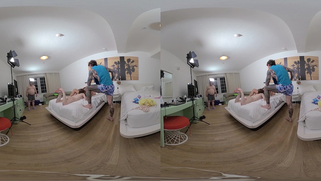 Two fresh face teenagers Renee Rose and Venus Vixen fuck and suck middle-aged madman Porno Dan in this virtual reality (VR) threesome. Filmed from a voyeur aka behind the scenes angle these super cute teens go buck wild with this 50-year-old man. 19-year-old Rene Rose is a tall brunette with green eyes, freckles a big booty. 18-Year-Old Venus Vixen is a tiny babe with a fat ass that is super excited to have her first threesome. The reality TV star shows these submissive girls why he is in the AVN Hall of Famer by giving them the most hardcore hammering of their lives. The eager-to-please girls with big asses love every second of the dick-down they receive. Little Venus Vixen has Porno Dan lick her feet while he rams and rails her tiny pussy; she climaxes so hard she almost taps out. Renee Rose cums like crazy with the five-time finalist as the Best Porn Performer in Europe and even has the first squirting orgasm of her life. Submissive Venus Vixen gives Dan a rimming while her submissi