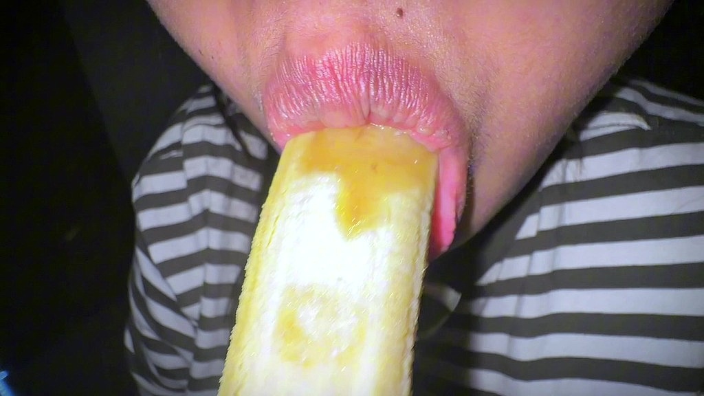 SCHOOL GIRL MORNING ROUTING BANANA PLAYING IN MOUTH