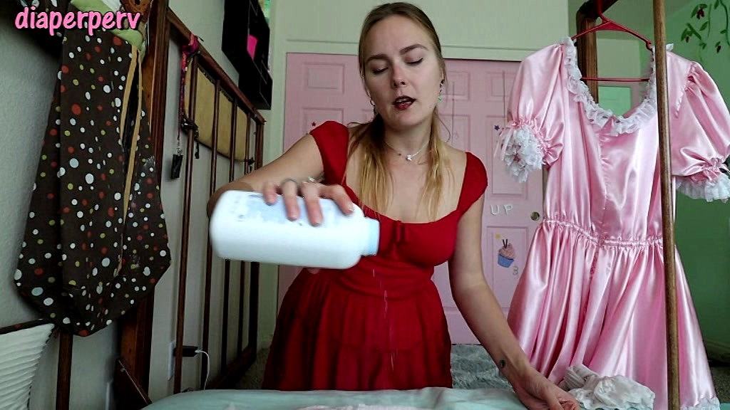 Vika is super sweet, loving and sexy as she comes into check your diaper! NO humiliation. It s soaked so it s time for a diaper change but this time, she s got a super girly diaper for you.. When she opens your diaper & wipes you, she sees your hole & decides it s time for some hole training. First, she needs to put a pink chastitiy cage over your cock, turning it into a clit, which is what girls have. It s slow paced & sensual. Then she uses her finger & slides it up your bumhole; let s have a nice long feel up there. Now she pulls out a HUGE pink dildo! We need to keep your hole open and stretched out. She enticing pushes it up your bum, going in and out sexily. Good girl. Now it s time to tape your diaper on after some powder of course. NExt, she needs to doll you up with blush & lipstick; such a cute, pretty diapered sissy! Stand up. We need to get some stockings on you and also a pink, frilly dress. Then she diaper checks you matter of factly & talks about