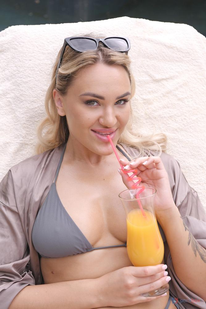 Rich girl Merida Sat is driven home by her driver, Darrell Deeps and changes into her bikini to enjoy some time by the pool. Darrell brings her some fresh juice as requested before Merida oils herself up with lotion. She starts feeling horny as her hands rub over her tits and this naughty babe pulls her bikini top apart to work on her nipples. While she lays down on the sunlounger, Merida gives her pussy some attention and masturbates. While she toys herself with a glass dildo, Merida is interrupted by Darrell who tells her the pool guy is running late. He helps Merida oil up her back and soon this sex crazed hottie is sucking on Darrell s BBC! She rides his shaft with her bubble butt bouncing up and down and the pool guy, Yanick catches them at it! Merida tells him to forget about the pool and join in with them instead! She enjoys a bit of rough as her two employees fill every hole with cock and DP her together! Merida ends up covered in two messy facials and looks very satisfied in t