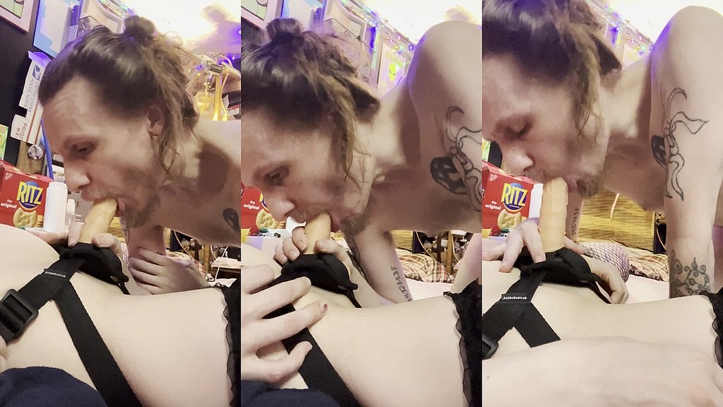 SHOVING WIFE’S STRAP ON COCK DEEP DOWN THROAT
