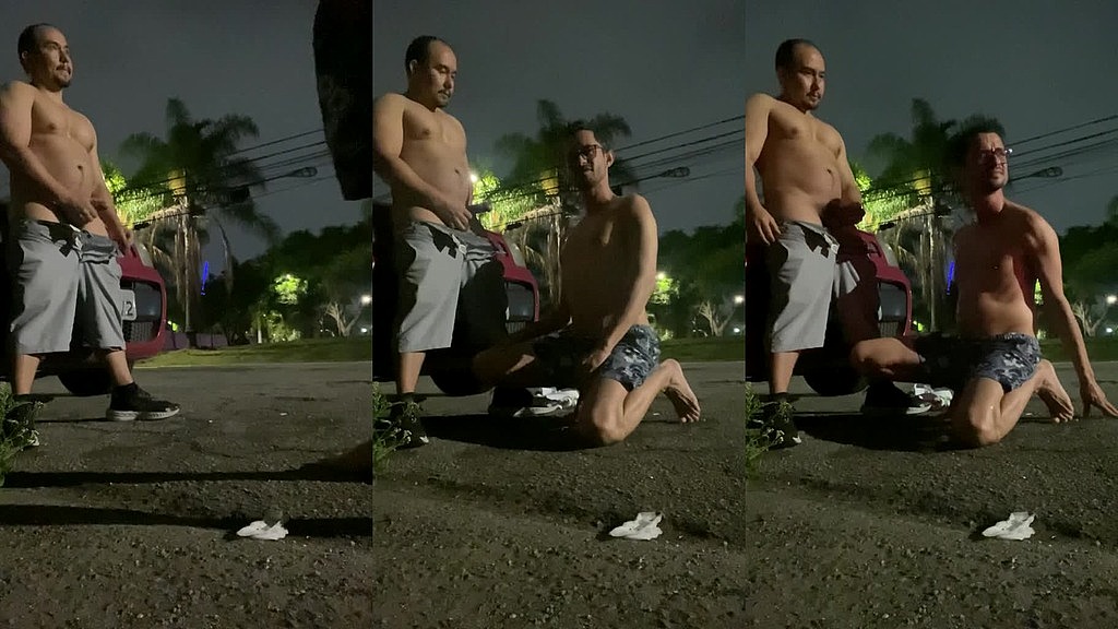 SLIM TWINK CUMS WHILE BUFF SHORT WHITE GUY PISSES ON HIM AT THE STREET
