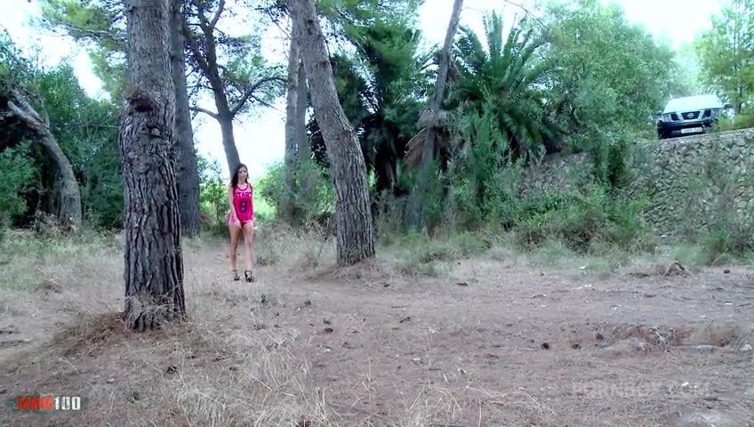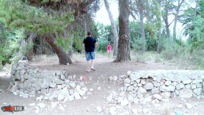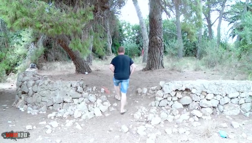Spanish MILF ass fucked in the woods while a guy is watching us and jerking