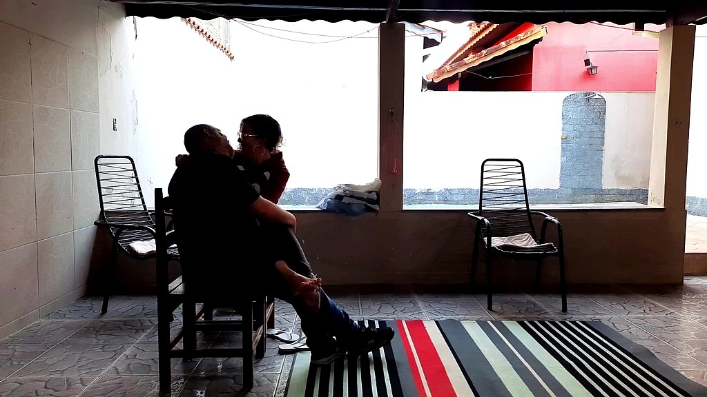 Stepdaughter was in the backyard alone when her stepfather arrives and asks to smoke with her and starts to seduce her, she gives in and after kissing him they take off their clothes and have strong sex