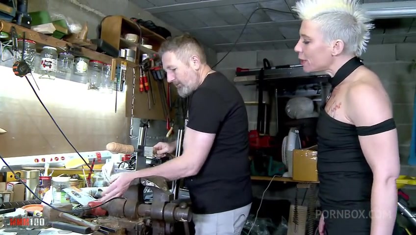 Stunning MILF Charlie gets her pussy and ass fucked hard in the workshop