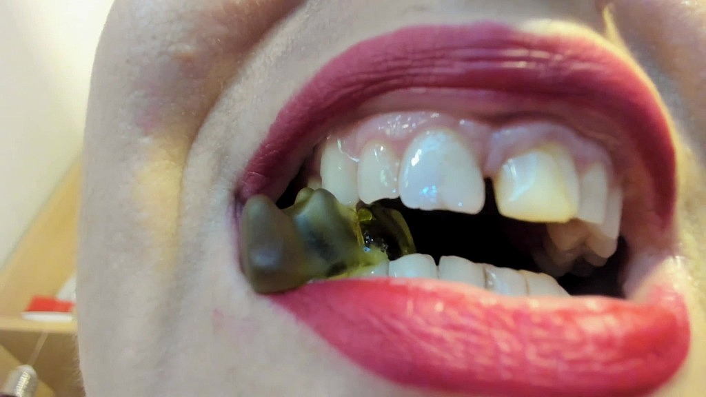Sitting in front of the camera, the warm light reflected on my face as I smiled at my virtual audience. My name is Nicoletta, and today I decided to share with you one of my most curious passions: gummy candies. I had a generous selection of candies of every shape, color and consistency in front of me. Some were hard, ready to challenge my teeth, while others were soft and inviting, like little clouds of sugar.<br>As I began to take one, I couldn t help but think about my current situation. My teeth, unfortunately, told a different story. Some of them were broken, signs of years of challenges and sweet transgressions. But despite this, today I was determined to enjoy every single bite.<br>I began to enjoy a bear-shaped candy, a bright red color. Its gummy texture slowly melted in my mouth. The sweetness exploded, taking me back in time. As I chewed, I felt a slight resistance, a reminder of my fragile teeth, but I didn’t let that deter me.<br>I moved on to a green candy, harder than th