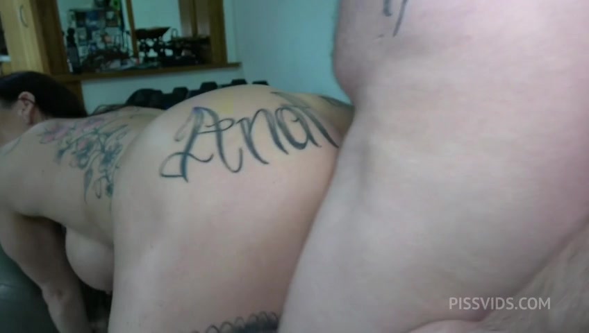 Tattooed butt busty MILF Julia Exclusiv gets anally trained and pissed in mouth by nasty coach