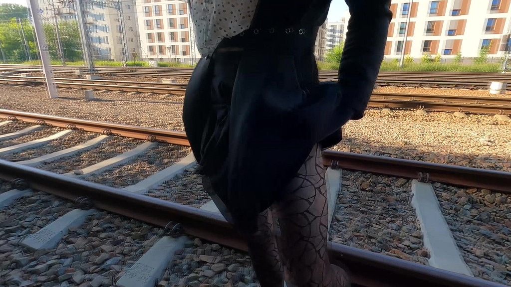 TEEN TRANS OLIVIA TRAIN RAILWAYS FLASH ROUND ASS AND DICK