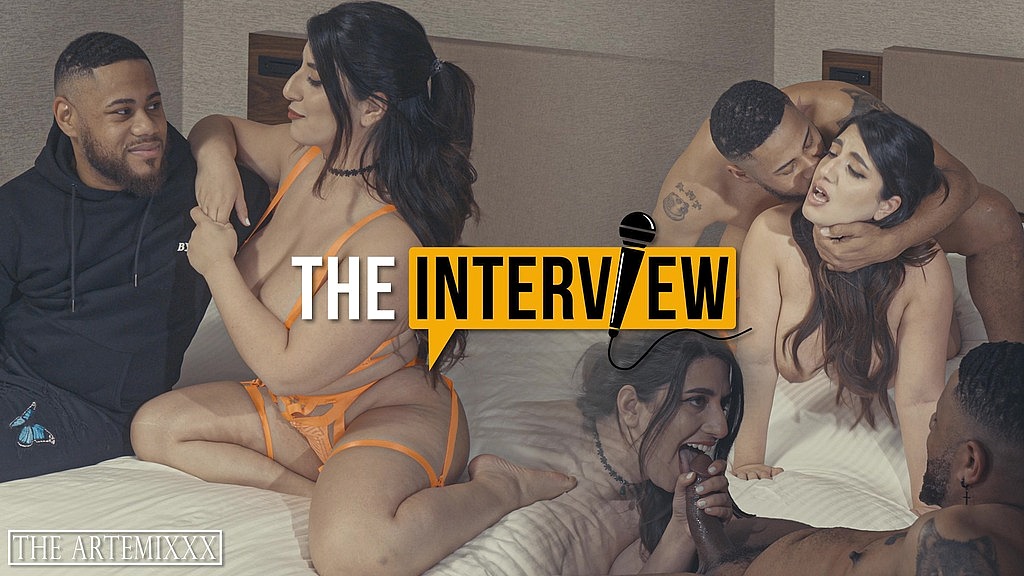 Artemis and Sarah been waiting to get their hands on each other for a very long time, So when Sarah finally got the chance to interview Artemis she made sure she didn t miss the opportunity to also feel his girthy cock stretch her tight pussy and creampie her deeply.