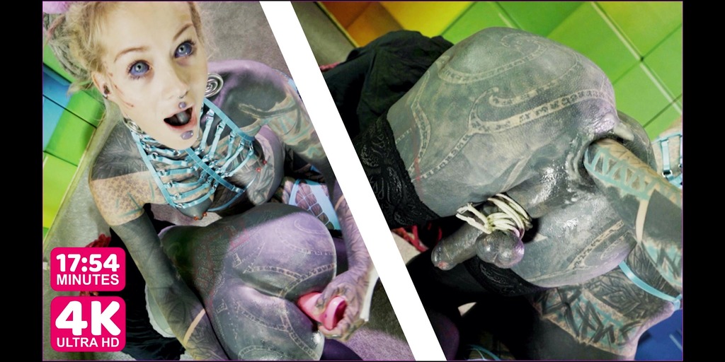 TRANS heavily tattooed sisy gets ANAL FISTED from domina - FEMDOM, dick bondage, toys (goth, punk, alt porn)