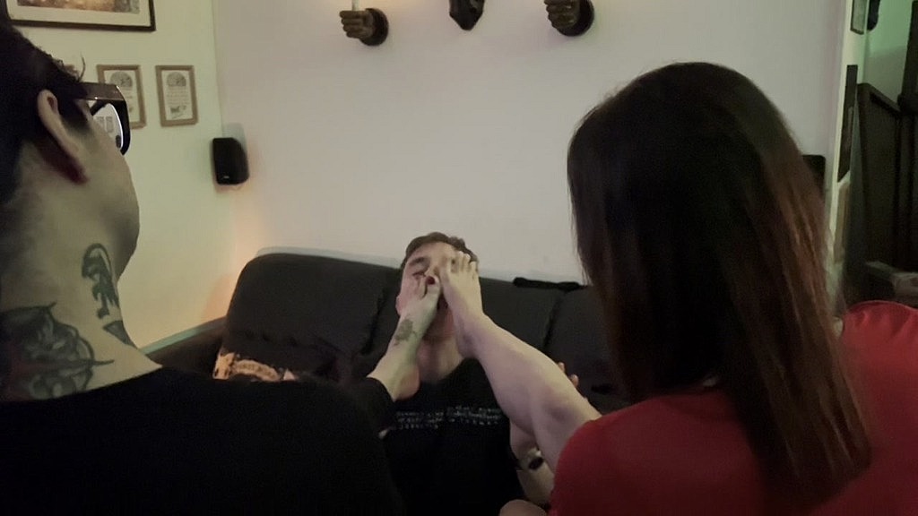 VALENTINA AND MISTRESS MINERVA FEET FETISH FANTASY WITH SUBMISSIVE MAN