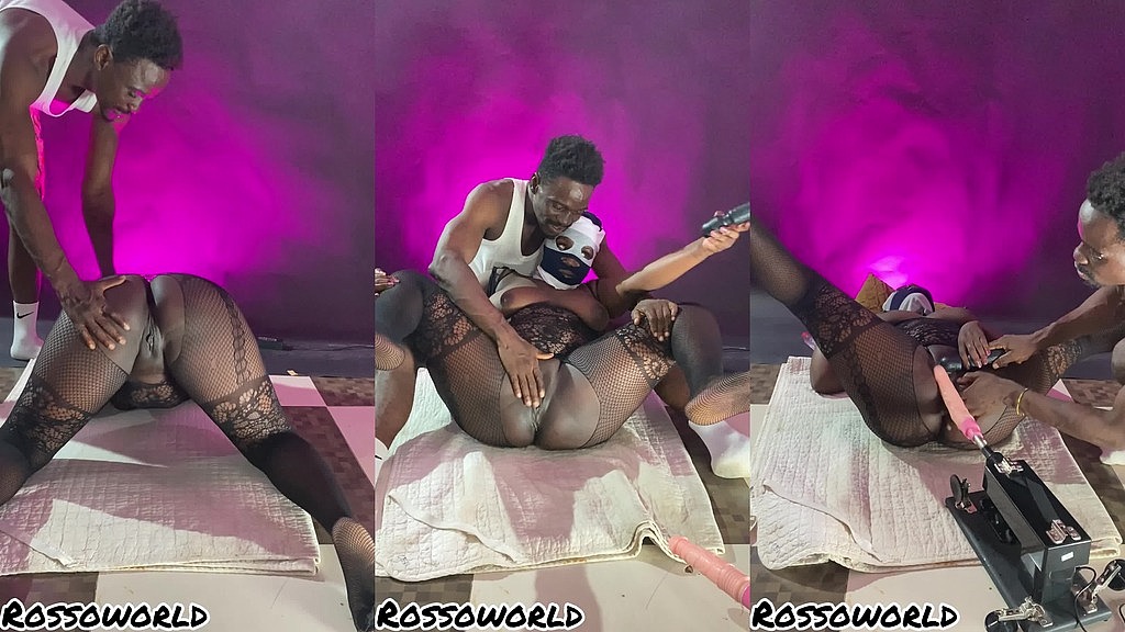 Ebony whore gets fucked with a machine