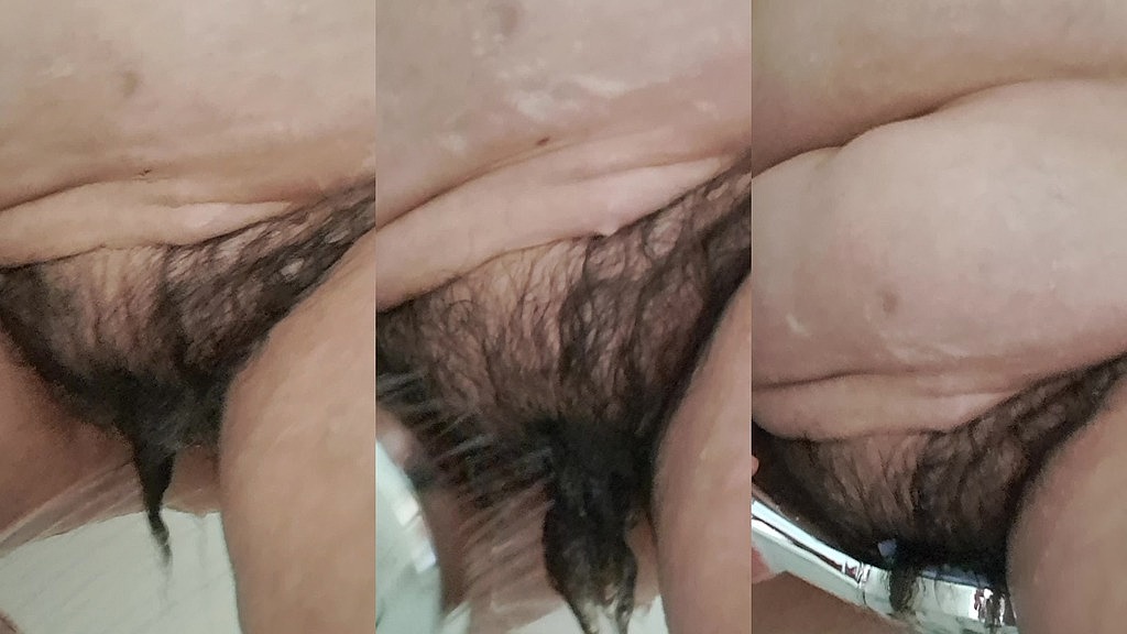 WIFE WASHING HER HAIRY FAT PUSSY AND VAGINA