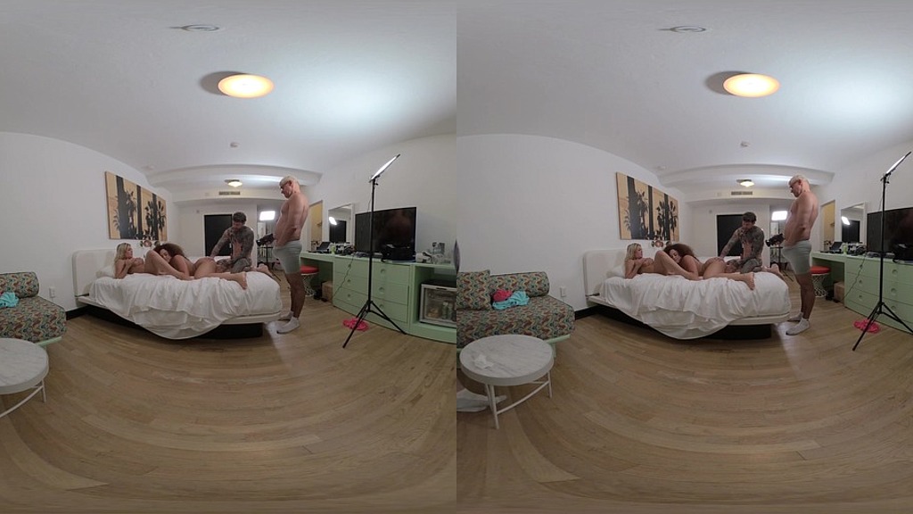 Check out this virtual reality (VR) version of a threesome featuring big booty baddies Willow Ryder and Vivianne DeSilva Rae with Dean Van Damme. Shot from a behind the scenes aka voyeur in 180 degrees virtual reality (VR) thick and curvy Vivianne DeSilva and her hot ebony friend Willow Ryder double team Dean. Dean has given thirsty Willow Ryder and Vivianne DeSilva one load of sperm and now these thirsty women want some more sperm. Busty Latina Vivianne DeSilva shows that she can deepthroat Dean with ease while poor cuckold Teddy watches and takes notes. Willow Ryder shocks Dean with her incredible sloppy blowjob skills and takes him balls deep. Bends over busty blonde Vivianne DeSilva and rails her while she licks the hairy pussy of Willow. Porno Dan tells cuckold Teddy to make sure he pays attention while Dean delivers a hardcore hammering. Next Dean bangs ebony queen Willow Ryder, and she twerks her huge ass on his big dick while in doggystyle. After Willow Ryder has an epic orgasm